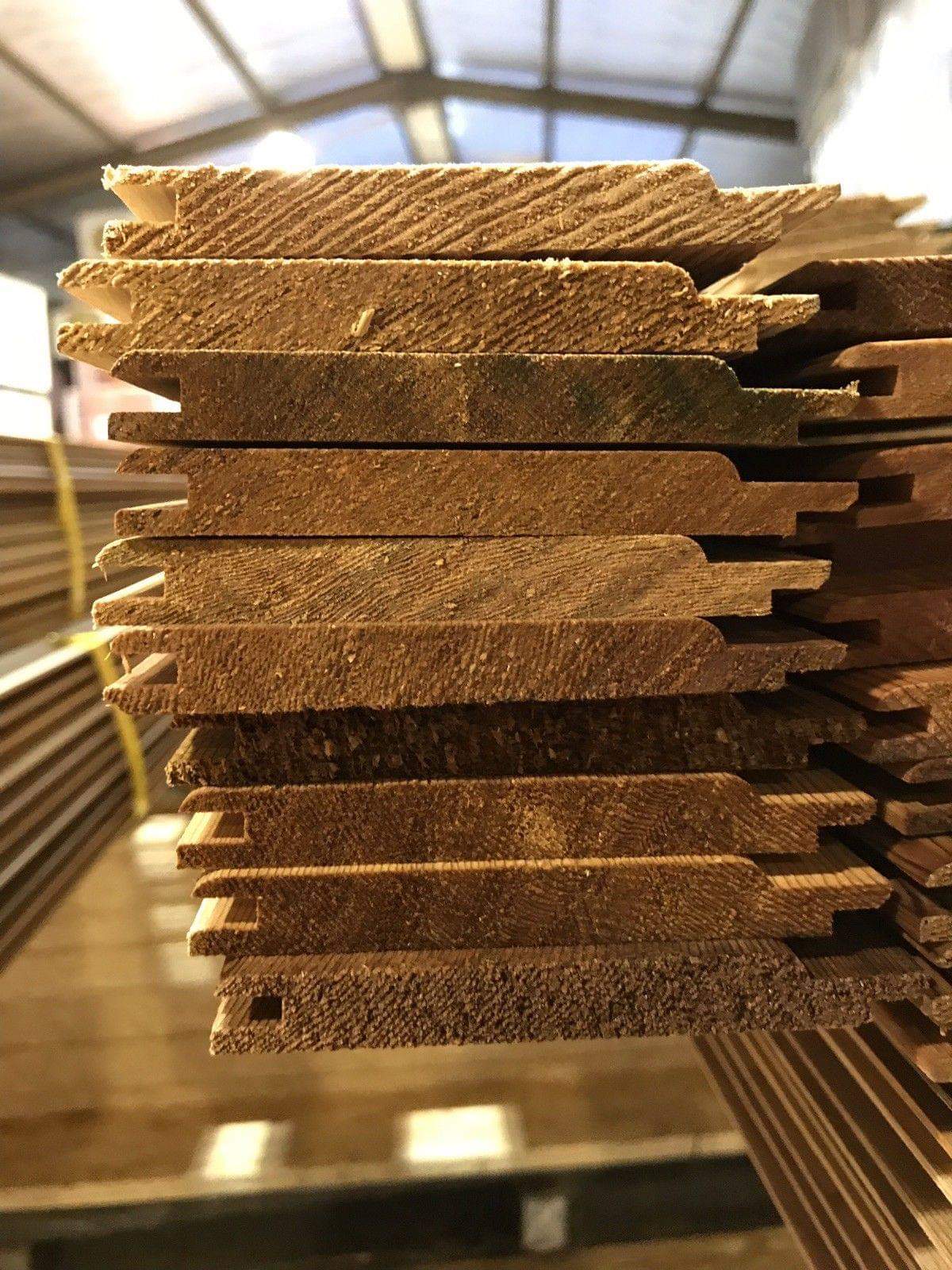 Modrzewia syberyjskiego, który ma kolor słomkowy, podobny do sosny, nie należy mylić z modrzewiem europejskim rosnącym w Wielkiej Brytanii, który ma kolor ciemnoróżowy. W przeciwieństwie do modrzewia europejskiego, sęki w okładzinie z modrzewia syberyjskiego mają jaśniejszy szary kolor i mają tendencję do pozostawania solidnymi nawet po wysuszeniu i obróbce. Z tego powodu preferujemy modrzew syberyjski w stosunku do modrzewia brytyjskiego w przypadku profili okładzinowych obrabianych maszynowo.